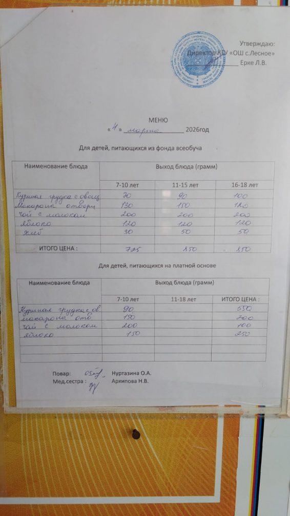 «Ақмола облысы білім басқармасының Сандықтау ауданы бойынша білім бөлімі Лесное ауылының жалпы орта білім беретін мектебі» коммуналдық мемлекеттік мекемесіне