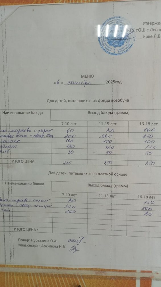 Коммунальное государственное учреждение «Общеобразовательная школа села Лесное отдела образования по Сандыктаускому району управления образования Акмолинской области»;