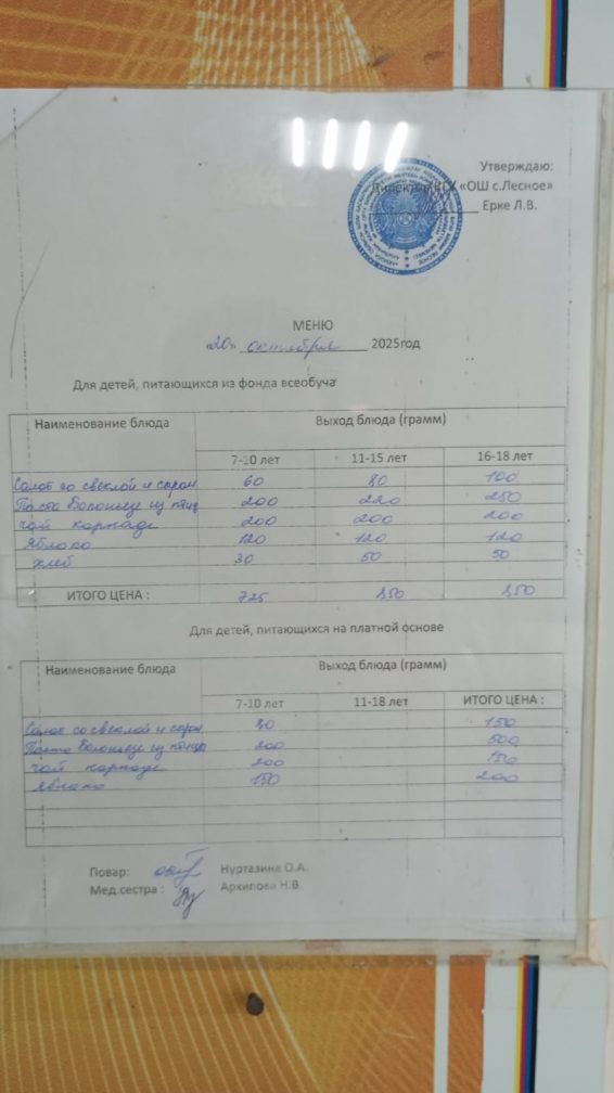 «Ақмола облысы білім басқармасының Сандықтау ауданы бойынша білім бөлімі Лесное ауылының жалпы орта білім беретін мектебі» коммуналдық мемлекеттік мекемесіне
