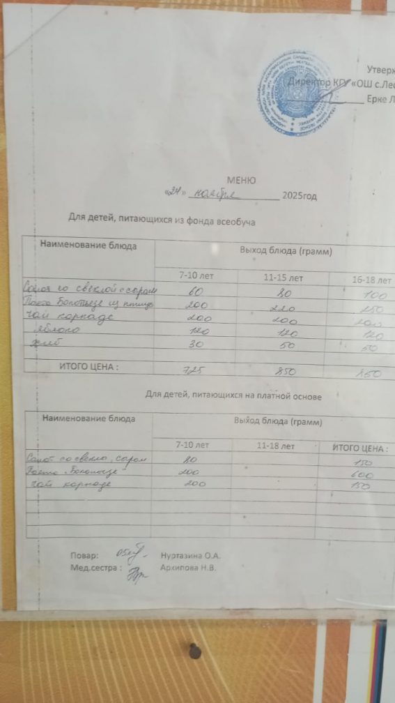 «Ақмола облысы білім басқармасының Сандықтау ауданы бойынша білім бөлімі Лесное ауылының жалпы орта білім беретін мектебі» коммуналдық мемлекеттік мекемесіне