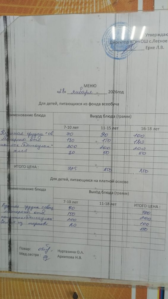 «Ақмола облысы білім басқармасының Сандықтау ауданы бойынша білім бөлімі Лесное ауылының жалпы орта білім беретін мектебі» коммуналдық мемлекеттік мекемесіне