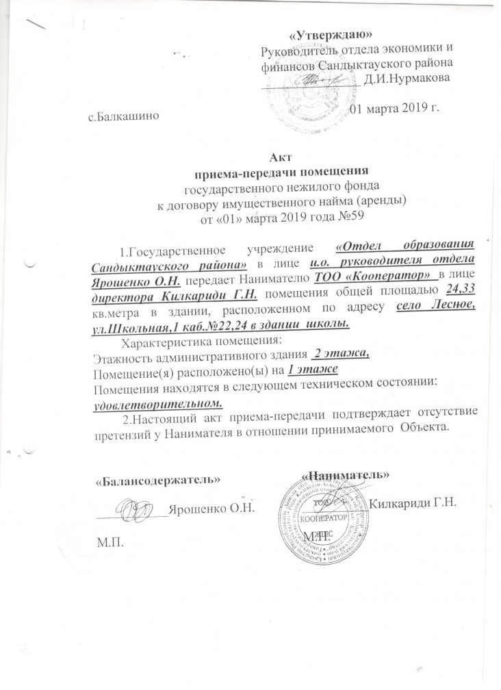 Коммунальное государственное учреждение «Общеобразовательная школа села Лесное отдела образования по Сандыктаускому району управления образования Акмолинской области»;