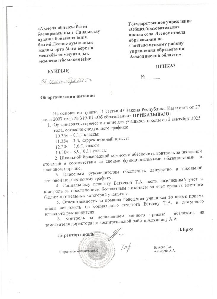 Коммунальное государственное учреждение «Общеобразовательная школа села Лесное отдела образования по Сандыктаускому району управления образования Акмолинской области»;