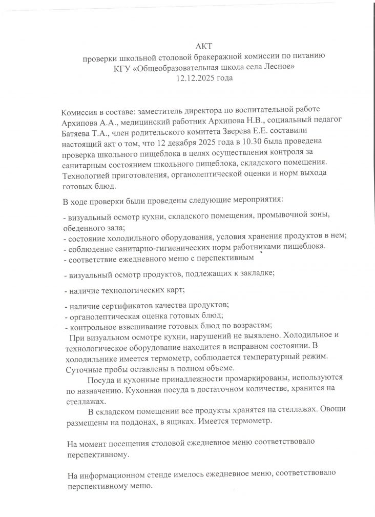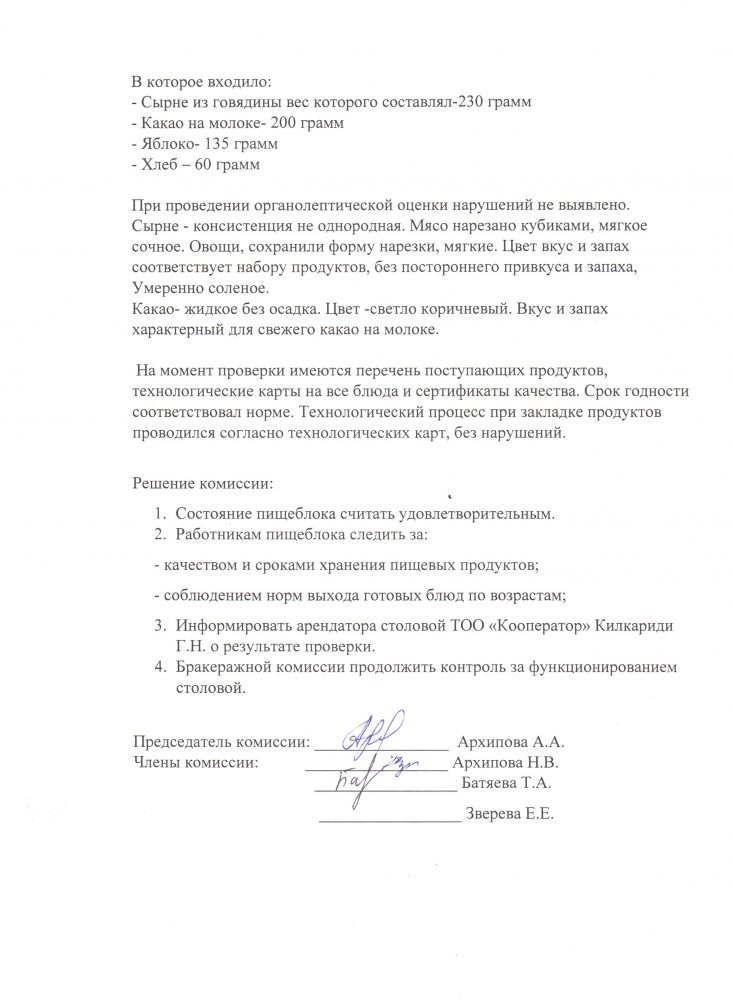 Бракераж комиссиясын тексеру актісі желтоқсан