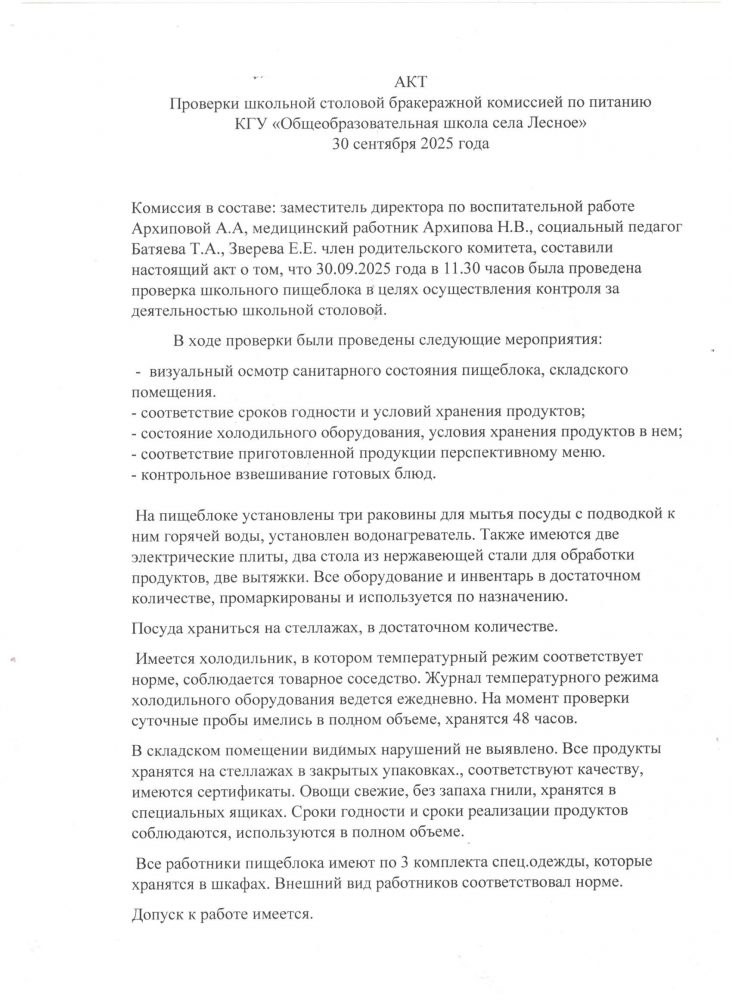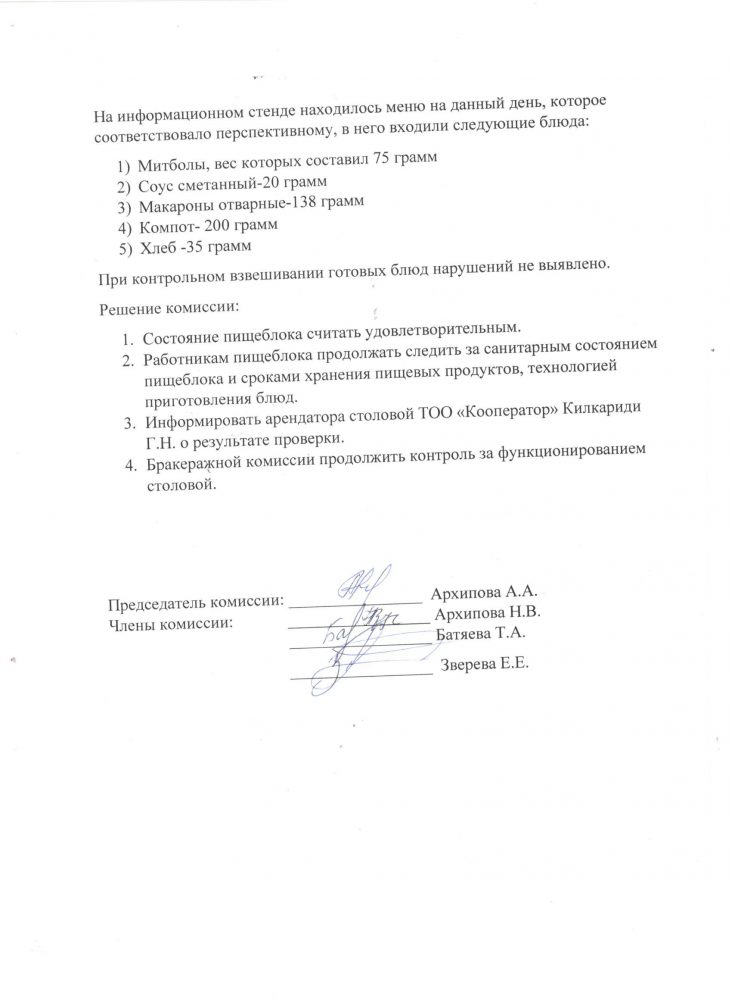 Бракераж комиссиясының асханасын тексеру актісі қыркүйек